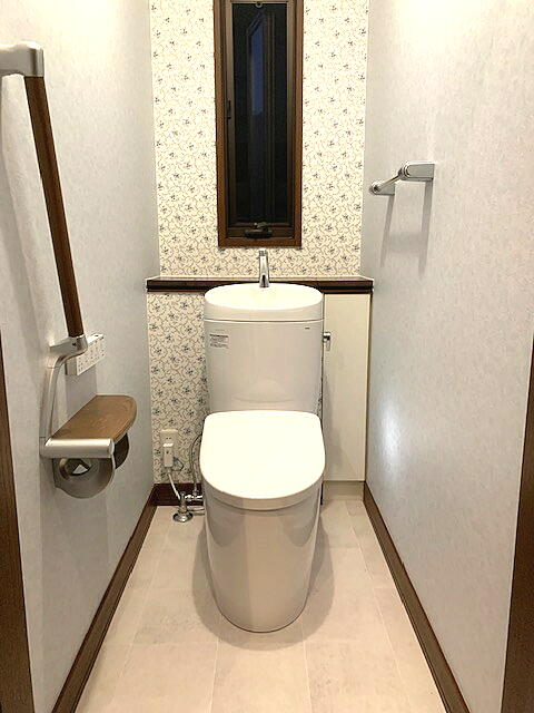 浜松市浜名区のS様宅のトイレリフォーム施工後写真です。壁紙にもこだわりが