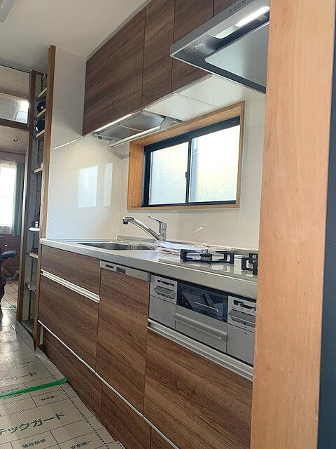 ピカピカの最新キッチンが入ったのに、すぐ横の窓枠が日焼けしてボロボロ…これでは画竜点睛を欠いてしまいます。現場の職人が「ここが綺麗ならもっと喜んでいただけるはず!」と、阿吽の呼吸で仕上げました。