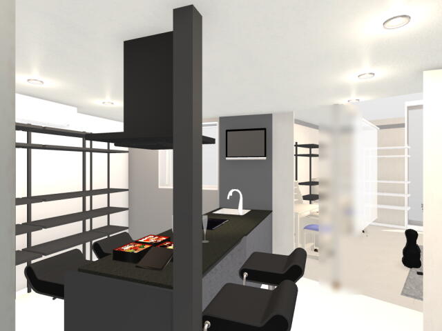 初期段階で作成したイメージパースの一つです。床の色やIKEAの収納が白ですね