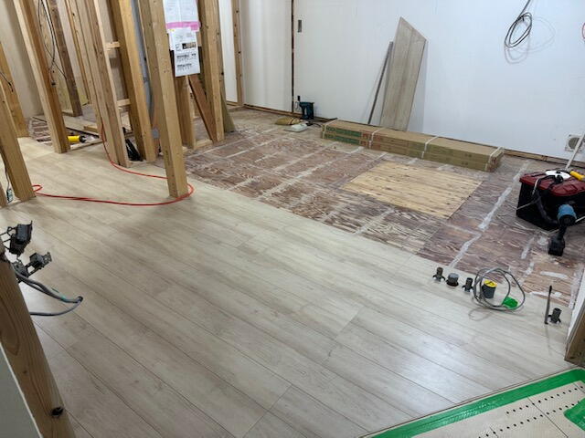 部屋の形が変わり、もともとの配置と違うところにフローリングを伸ばしていく必要があります。