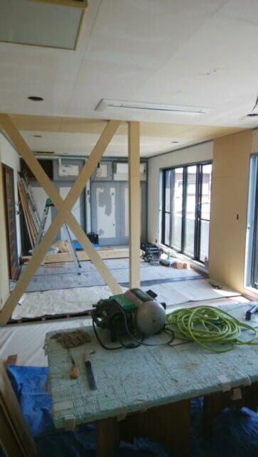 ↑写真小さいですが梁補強で間仕切り壁を撤去した戸建て住宅施工例です↑