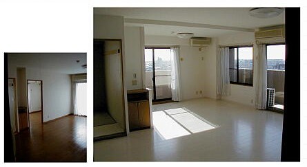 - 行った作業: LDKと和室の間仕切り壁(構造壁ではないことを確認済み)を撤去し、和室の床をLDKのフローリングと統一。