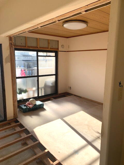 つまり、壁を壊したあと、床を塗って乾くまでの数日間、現場はストップしてしまうのです。 今回も、当初の予定より工期を4日ほど延長していただくことになりました。お客様の引越し予定に余裕があったのが不幸中の幸いでした。