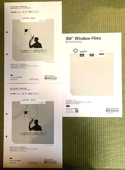 今回、私たちが住友3Mさんから取り寄せ、現場で実際に確認していただいたサンプルは、遮熱・UVカットフィルムの中でも特に高性能な**「ピュアリフレ」と「NANO」**シリーズです。